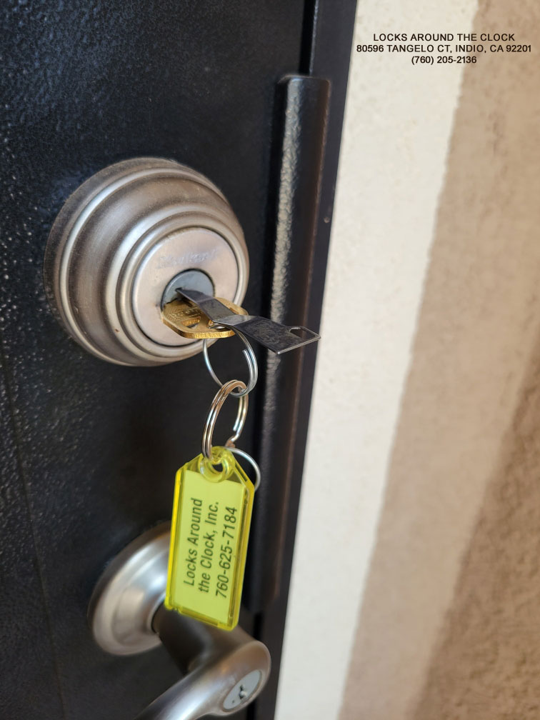 Locks Around the Clock is your trusted partner for all house locksmith needs in the Indio area. If you’re wondering, “Is there a house locksmith near me?” – look no further. Our team of experienced locksmiths can rekey your locks, install new locks, and provide security assessments to keep your home safe and secure. We’re the 24-hour locksmith service you can rely on for all your residential locksmith needs.